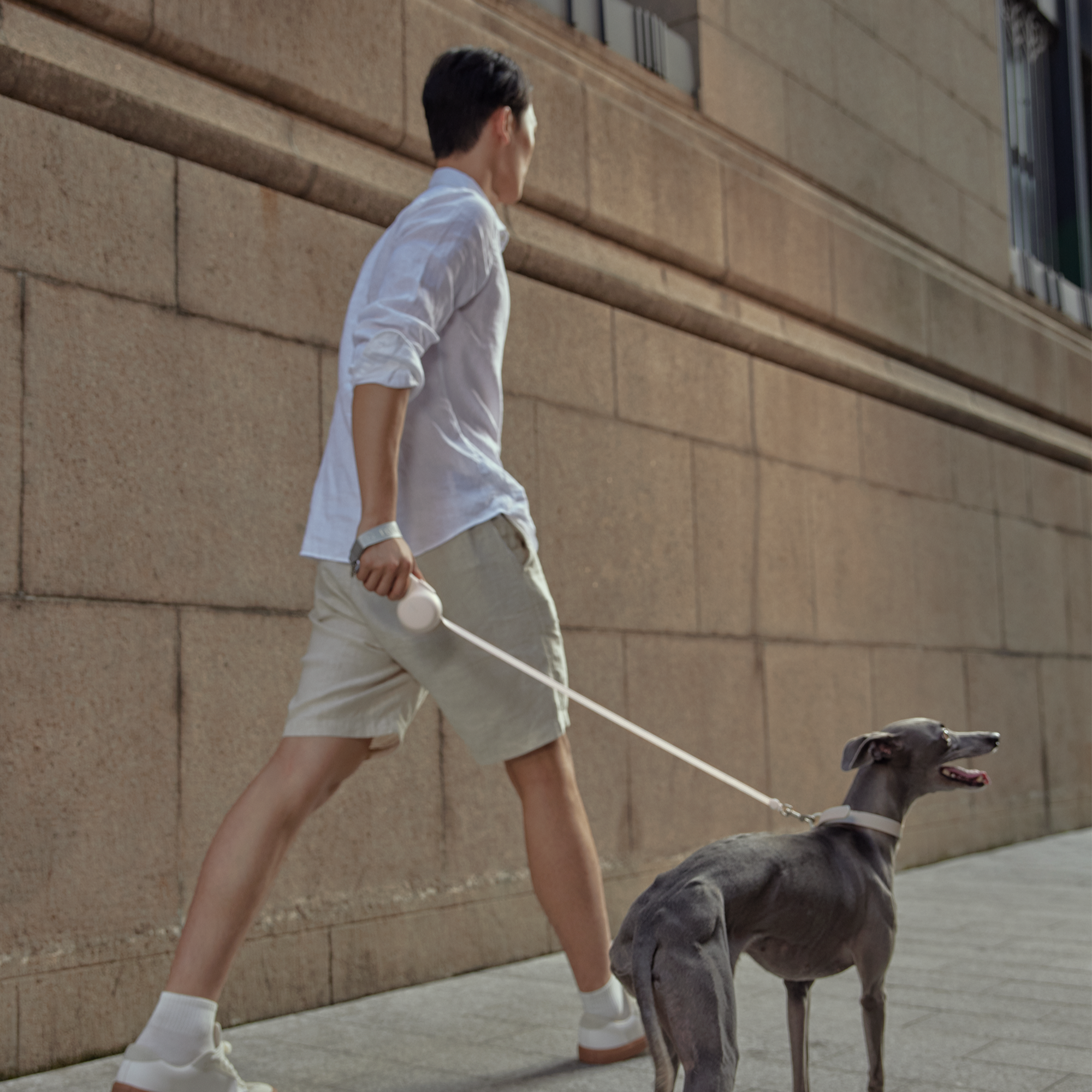 Enjoy the benefits of a retractable leash with added convenience and fashion.